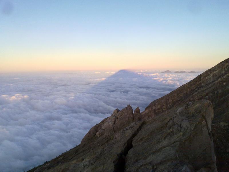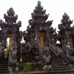 Heute sind wir (fast) auf den höchsten Berg von Bali gelaufen. Expeditionsmässig. Um 1.oo Uhr in der Früh mit dem Taksi los, dann um ca. 2.00 Uhr Frühstück Nr. 1 auf dem Parkplatz. Im dichten Nebel die Tempeltreppen hoch und eine erste Pause für das notwendige Opfer in Hindutradition. Dann immer mehr oder weniger geradeaus den Berg hinauf mit Trinkpausen so alle halbe Stunde, irgendeine davon ist Frühstück Nr. 2. Um uns herum schnaufts schon ziemlich. Die Russen passieren wir im Zwanzigminutentakt und werden dann auch gleich wieder von ihnen überholt. Vier Stunden haben die Local Guides für die den Weg gerechnet, davor wird die Sonne nicht aufgehen. Wir laufen langsam. Eine Gruppe Franzosen klettert auf allen Vieren an uns vorbei. Dann ziehen wir an ihnen vorbei, nur um bei der nächsten Pause wieder eingeholt zu werden. Es wuselt nur so im Dunkeln. Überall blinken Stirnlampen, schwatzen Guides, schnaufen Touristen.