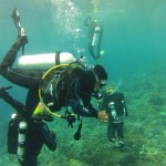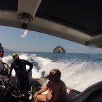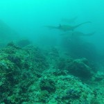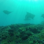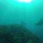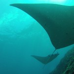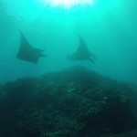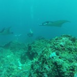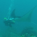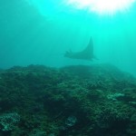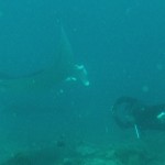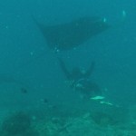 Ach ja, und dann waren wir heut nochmal bei den Mantas. Beinahe wär das jedoch ins Wasser gefallen, denn ein Motor am Speedboot stotterte und stellte dann ab. Auch nachdem die Crew bei voller Fahrt mit den zwei übrigen 85-PS-Motoren die Zündkerzen gewechselt hatte, wollte er nicht. Ohne ihn aber kein Manta Point, da zu viel Strömung auf dem Hinweg. Die Jungs vom Boot haben aber nicht aufgegeben und so hat’s doch noch einmal geklappt. Sehr zu unserer Freude: