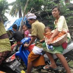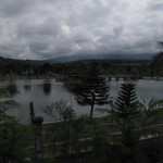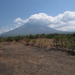Dann gings aber flott weiter, denn wir realisierten, dass wir noch einen weiten Weg vor uns hatten, und nach dem Eindunkeln wollten wir nicht mehr unterwegs sein. Da solls nach Olaf, unserem Tauchbasisleiter, dann schon sehr gefährlich werden auf den Strassen, weil die Balinesen nach dem Feiern gern ausgiebig zur Flasche greifen und entsprechend viele Betrunkene unterwegs sind. Uns fiel vor allem auf, dass im Lauf des Tages, der Putz wieder abgelegt wurde, dann gabs dann auch wieder mal eher einen Helm auf den Kopf. Wir kurvten also noch über den gut 1300 Meter hohen Pass (tauchpausentauglich? fiel uns eh zu spät ein …) zum Ulun Danu Batur Temple, wo die Aussicht auf das Ausmass des letzten Ausbruchs des Gunung Batur (inkl. See) sehr eindrücklich ist, und von dort gings dann endlich wieder talwärts Richtung Candidasa.