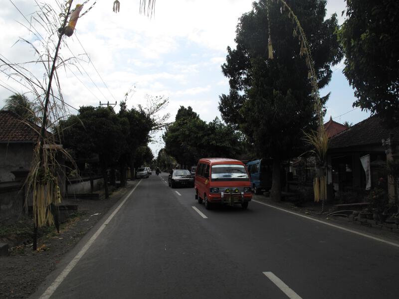 Bemos heissen die auf Bali, und halten an, wenn man am Strassenrand steht und so aussieht, als ob man mitgenommen werden möchte. Will man raus, ruft man «Kiri, kiri» durch den Bus, was so viel heisst wie links. Vorn und hinten am Bus steht, zwischen welchen Orten der Bus pendelt. Umwege kanns auch mal geben. Für grosse Distanzen gibt es grössere.