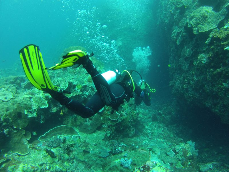 Von den Weissspitzen-Babyhaien haben wir leider auch im zweiten Versuch kein scharfes Foto hinbekommen; aber da hinten unten rechts sind sie