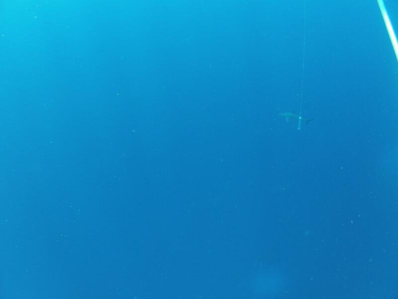 mit Hai, damit’s auch dort spannend ist. Der weiss hoffentlich, dass das am Seil dann kein Tuna-Kopf ist?