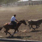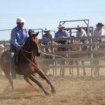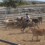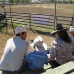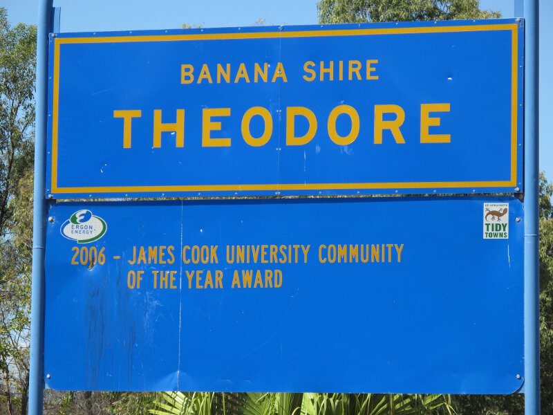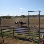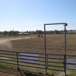 Wieder hiess es, früh auf, und ab ging die Post, denn es wollten einige Kilometer abgespult sein heute. Lange und gerade waren die Strassen wieder; das liess auch etwas Zeit, die Akkuladung des Computers mit Berichteschreiben wieder zu killen, schliesslich sind wir noch immer arg im Rückstand mit Posten. Doch schon in Theodore, einer Ortschaft nach Banane, wurden wir aufgehalten, denn da gab es diese tolle Sportveranstaltung, der wir unbedingt kurz zuschauen wollten: Gamedrafting heisst die, und die Regeln sind die folgenden: ein Reiter, auf Pferd, eine kleine Gruppe Rinder im Gatter. Davon sucht sich der oder die Reiterin eins aus, trennt es von den andern und treibt es durch ein auf sein Kommando geöffnetes Gatter aufs Feld hinaus, wo das Rind eine Acht um Bäumchen laufen und anschliessend ein durch Bäumchen markiertes Gatter passieren muss. Dafür hat der Cowboy eine Zeitlimite. Natürlich will das Rind lieber zu den andern Rinder zurück und eine Acht laufen eigentlich auch nicht, also müssen das Cowgirl und das Pferd dafür sorgen. In 80% der Fälle gewinnt das Rind (allerdings sahen wir nur die Novizen, bei den Profis siehts wohl anders aus). Sonst gibts für Einzelabschnitte Punkte, und für uns zum Abschied einen leckeren Burger und Instant-Kaffee (Bacon and Egg, zweites Frühstück).