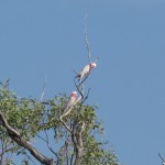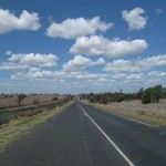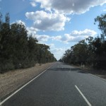 Bisher einer der langweiligsten Strassenabschnitte. Oft hatte es Bäume zu beiden Seiten der Strasse und drum sehr wenig Gegend. Eigentlich wollten wir nur bis Moonie, aber dort hatte es ungenügenden Empfang für unser Skype-Date mit den vereinten Müttern. Darum ging es nochmal lockere 180 km bis St. George, was dann eine stolze Tagesetappe von 700 Kilometern ergab. Belohnen wollten wir uns mit unserem ersten Auswärtsznacht in Australien überhaupt und bekamen von der Camping-Betreiberin als Alternative zur möglicherweise geschlossenen Pizza-Beiz ein China-Restaurant empfohlen. Pizza gabs tatsächlich keine, chinesisch aber an der angegebenen Adresse auch nicht wirklich. Es dauerte eine geschlagene Stunde, bis unser Essen kam, und das Chicken mit Plum Sauce erinnerte stark an Uncle Ben’s Sweet’n’Soure Fertigsauche 🙁 Also das können wir selber viel besser … Egal, hungrig genug waren wir allemal und so war dann auch das eher üble Essen weggeputzt und wir sahen zu, das wir in die Kajüte krochen.
