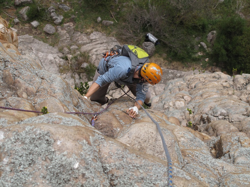 Die erste Seillänge ist die schwerste, wenn man sie direkt grad hoch dem Riss entlangklettert, so wie wir.