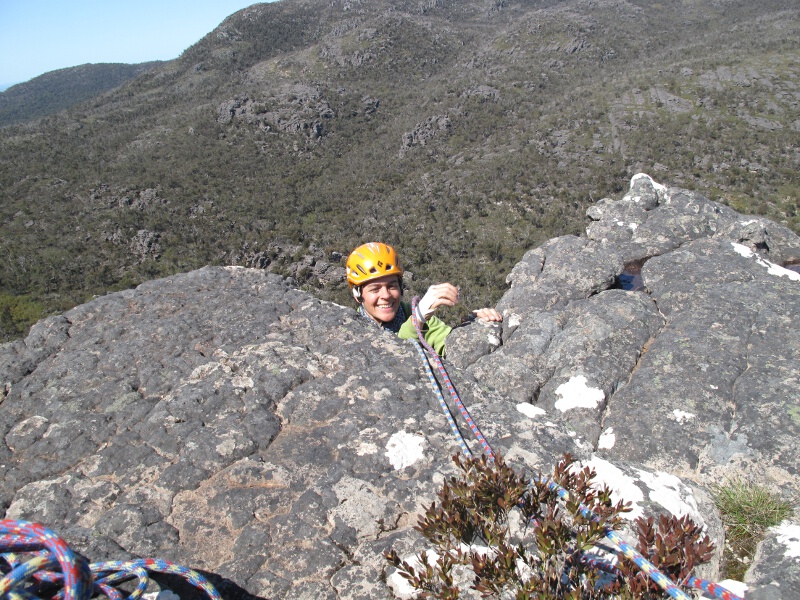 Da strahlt die Trad-Kletterin nach bestandenem Abenteuer