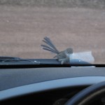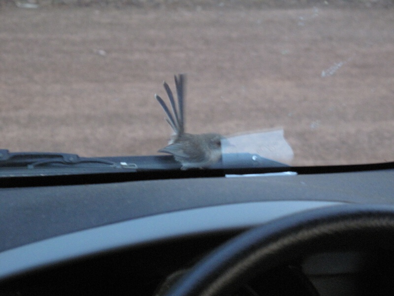 irgend etwas fand dieses Vögelchen an unserer Windschutzscheibe extrem attraktiv.