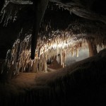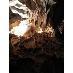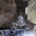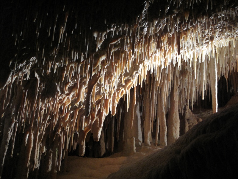 Die Anfahrt war schon mal ganz in Ordnung, ganz viele Kürvli und eine schmale Strasse, dass man sich schon bis an deren Rand wagen musste, wo es steil nach unten ging. Kaum angekommen war die Lust zum Klettern wieder da: Kalk vom Feinsten! 50 Meter hohe Tunnelbogen, strukturiert und mit vielen Sintersäulen. Leider darf frau aber da nicht klettern, nur gucken. Und das taten wir dann auch. Leider waren die Touren schon sehr gut vorgebucht (School Holiday UND langes Wochenende), doch ergatterten wir uns noch die letzten zwei Plätze für eine Tour mit Ranger in der Lukas-Höhle, einer der ungefähr 10 verschiedenen Höhlen, die besucht werden können.