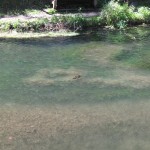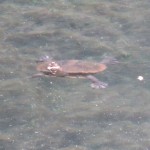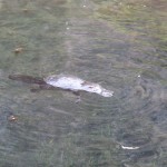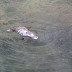 Wieder draussen wärmten wir uns am kleinen Flüsschen auf und genossen die Sonne, die so langsam hervorlugte. Und was war da im Wasser? Ein, nein gleich zwei Platypusse, die bei helllichtem Tag und vor allen Leuten, tauchten, sich kratzten und uns grad nochmal knipsen liessen. Die kleine Schildkröte passte dann auch grad noch so ins Bild.