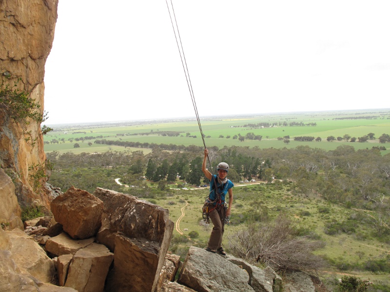 ein Markenzeichen der Arapiles, im Hintergrund der Zeltplatz und unser Camper