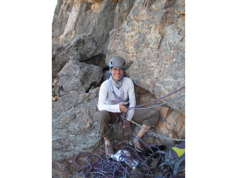 Sie hat ja auch Gesellschaft, eine erschöpfte Kletterin eines Dreier-Teams nahm dankbar unser Angebot für einen einfacheren Ausstieg auf die Bluffs an.