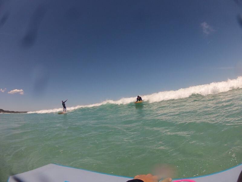 Also Rachel ist rechts am Liegestütz machen, nciht links am rumtanzen auf dem Brett; das war ein netter Herr aus Queensland, aber dazu später mehr