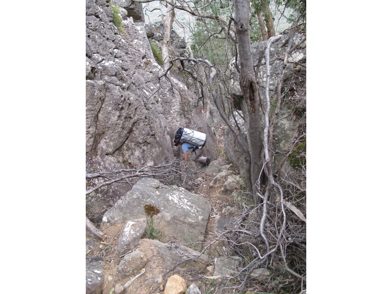 Abstieg, steil und scrubby